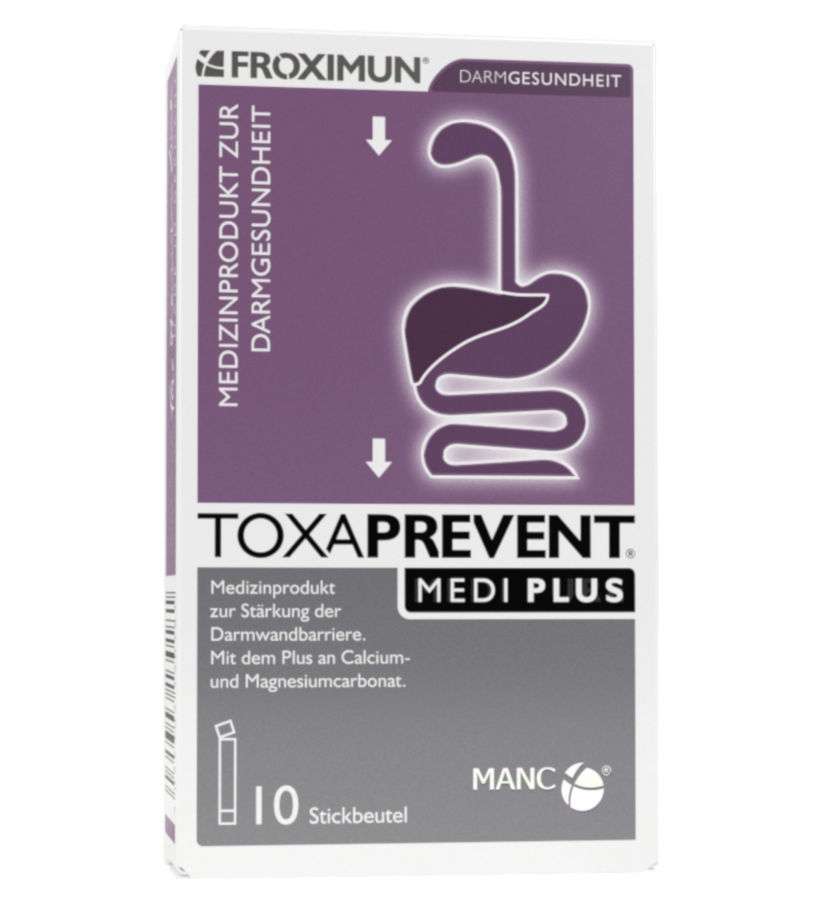Die Einnahme von TOXAPREVENT® MEDI PLUS senkt nachweislich die Zonulinwerte, welche Marker für die Durchlässigkeit der Darmschleimhaut sind. TOXAPREVENT® MEDI PLUS Pulver durchläuft den gesamten Verdauungstrakt und entfaltet seine Wirkung dort, wo Bedarf besteht. Der Hauptinhaltsstoff MANC® (80%) wird nicht verstoffwechselt, Spurenelement von MANC® sind nicht bioverfügbar und können nicht vom Organismus aufgenommen werden. TOXAPREVENT® MEDI PLUS Pulver stärkt die Darmwandbarriere durch Bindung und Ausleitung von Reiz- und Schadstoffen (durch Ionenaustausch) und trägt zur Stabilisierung der Schleimhaut des gesamten Verdauungstraktes bei. Anwender berichten über den erfolgreichen Einsatz von TOXAPREVENT® MEDI PLUS Pulver auch bei chronischen Sodbrennen bzw. Refluxerkrankungen.